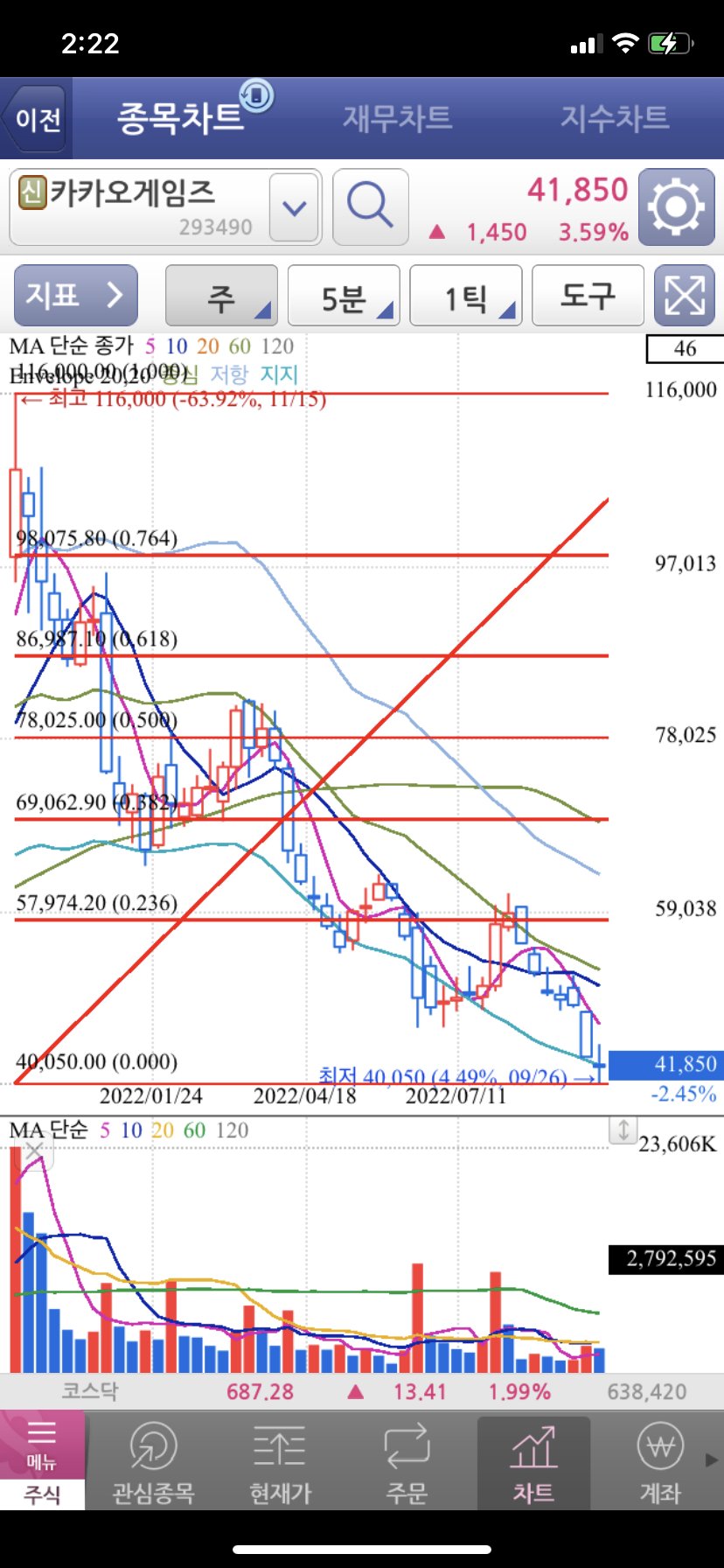 일봉으로 보나 주봉으로 보나 허허~