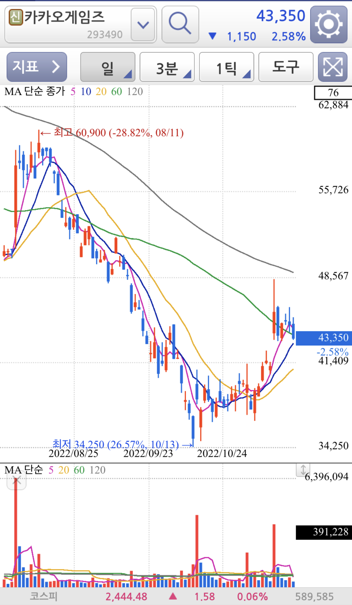카카오기임즈는 10프로 이상이면 분할매도 들어 가야겠어요 카카오게임즈 뿐만 아니라 10%이상이면 분할매도가 맞겠죠?