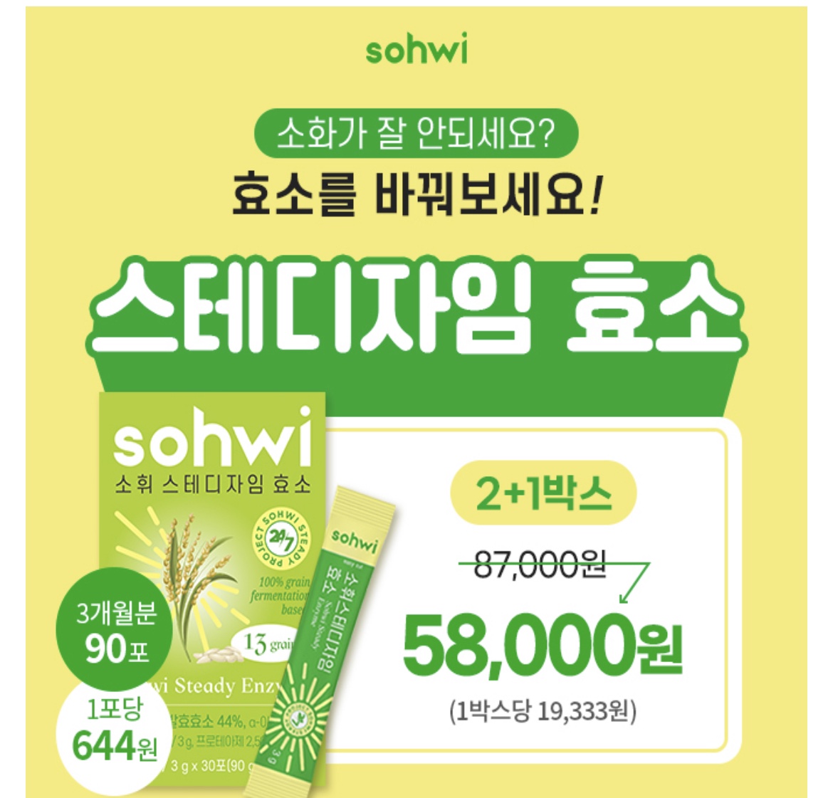 소휘 스테디자임 효소는 OO의 기운 그대로를 담은 100% 국내산 13종 통곡물을 발효하여 안심하고 믿고 드실 수 있습니다. 여기서 OO은? (힌트 : ㅈㅇ)