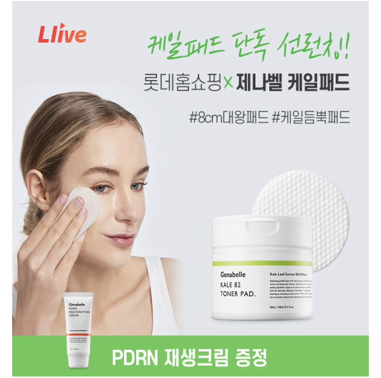 오늘 딱 하루만! 롯데아이몰 x 제나벨에서 케일패드 선런칭 세트 구매시 PDRN 재생크림을 무료로 증정드립니다.제나벨에서 처음으로 선보이는 케일패드는 8cm 대왕패드로 각질제거와 피부진정에 뛰어난 효과를 보입니다. 피부 진정에 도움이 되는 케일잎 추출물이 OO만 ppm 함유되어있는 케일 OO 토너패드는 딱 오늘만 최대 68%할인과 사은품 행사를 진행합니다.
