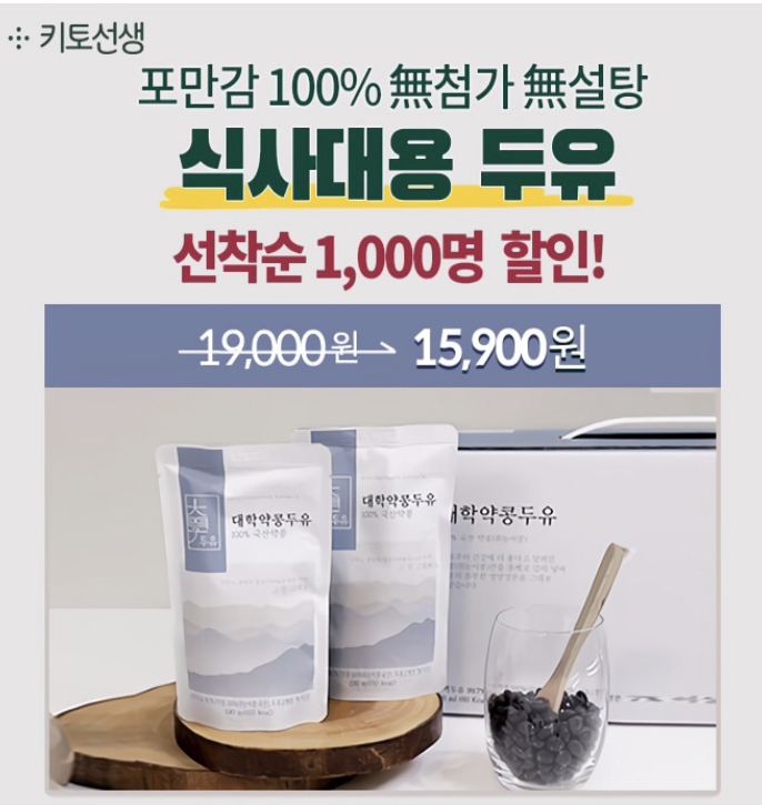 키토선생 대학약콩두유는 합성향료, 안정제, 유화제 없이 100% 국산약콩을 껍질째 그대로 갈아 만든 두유입니다. 콩의 OOO O이 더 살아나고 바쁜 아침 식사대용으로 간단하지만 든든하게 마실 수 있어요.