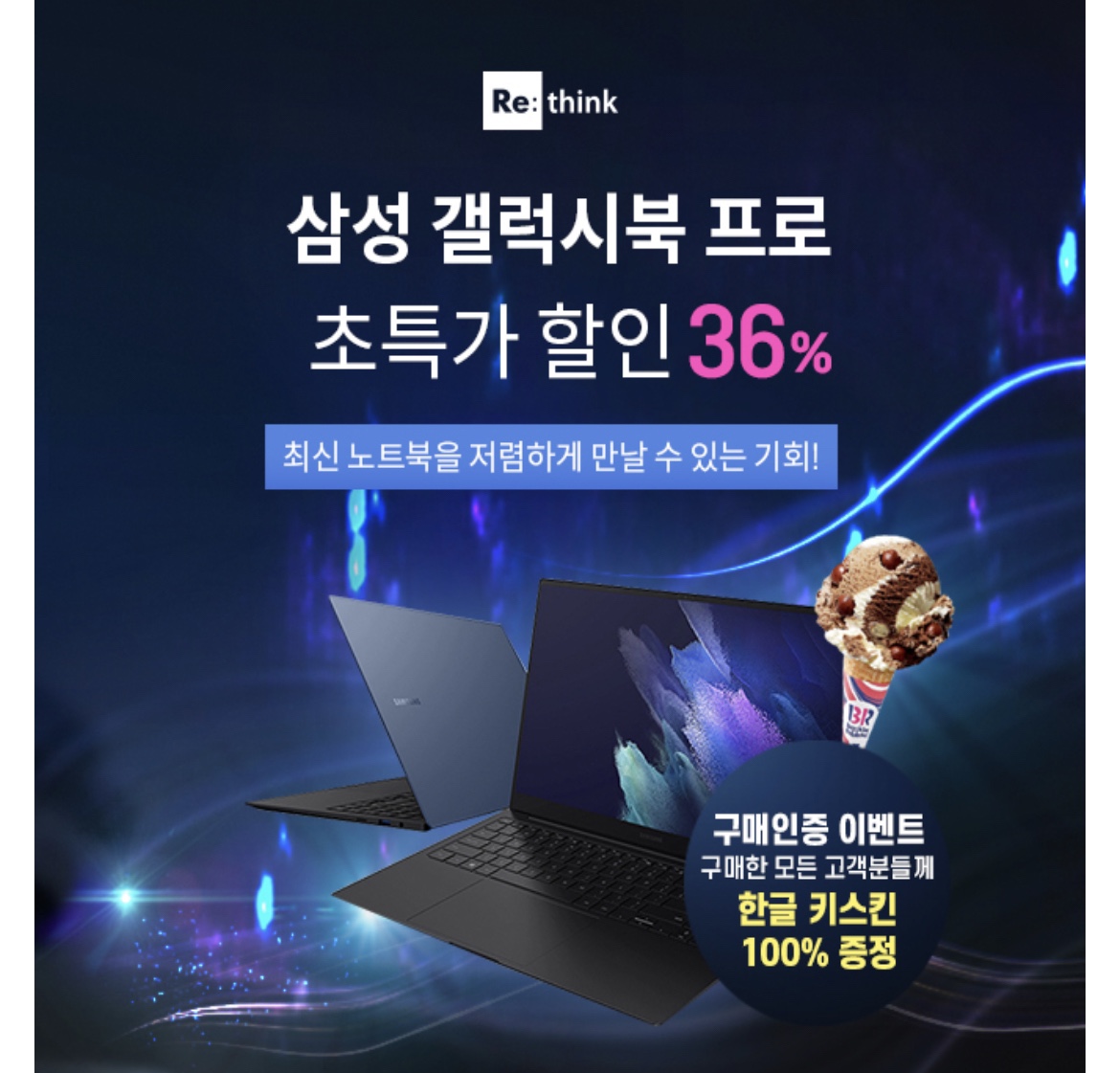 성능이 좋고 가벼운 삼성 노트북을 찾고 계시나요? 그렇다면 지금 리씽크 방송을 놓치지 마세요! 갤럭시북 프로를 초특가로 만나볼 수 있습니다! OOOO 코어 i7-1165G7와 램 16G까지! 이 좋은 기회를 놓치지 마세요~