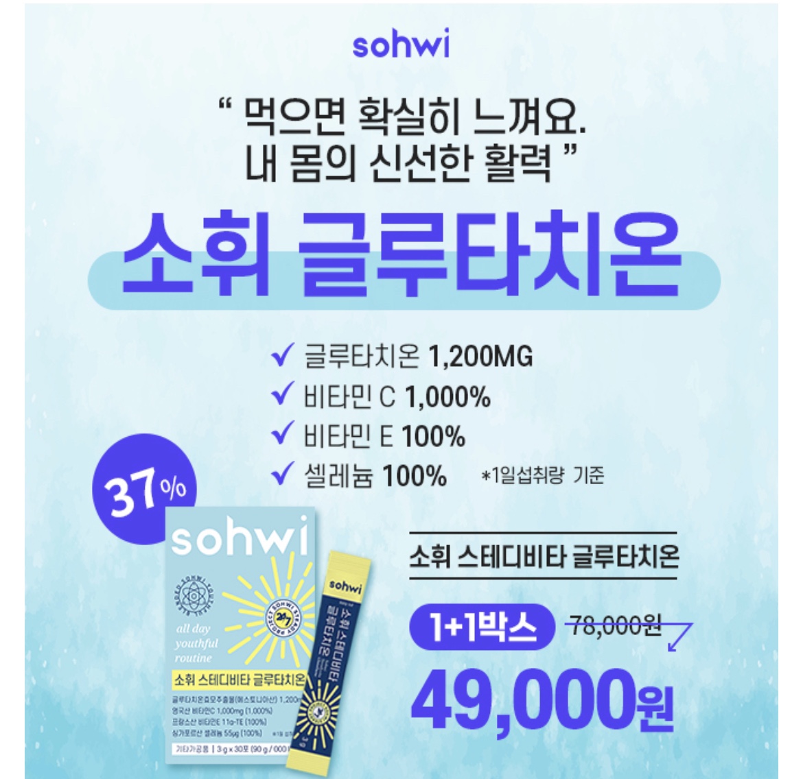 "이전엔 따로 비타민씨를 챙겨 먹었는데 이젠 이제품만 먹어도 되어서 좋아요! 글루타치온 OOOO 먹을 수 있어 좋고 새콤하게 맛있어요^^ 믿을 수 있는 원산지라 더 안심입니다" 다음은 소휘 글루타치온의 고객 리얼 후기 입니다. 여기서 OOOO는? (힌트 : ㄱㅍㅎㄱ)