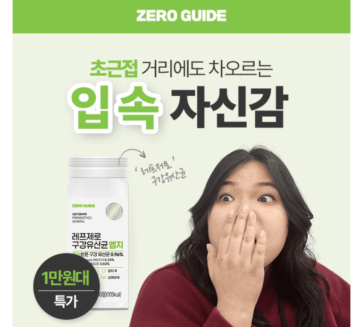 <레프제로 구강유산균> 구취의 기본인 oo과 근본인 장 까지 함께 관리해줍니다. (힌트 : ㄱㄱ)