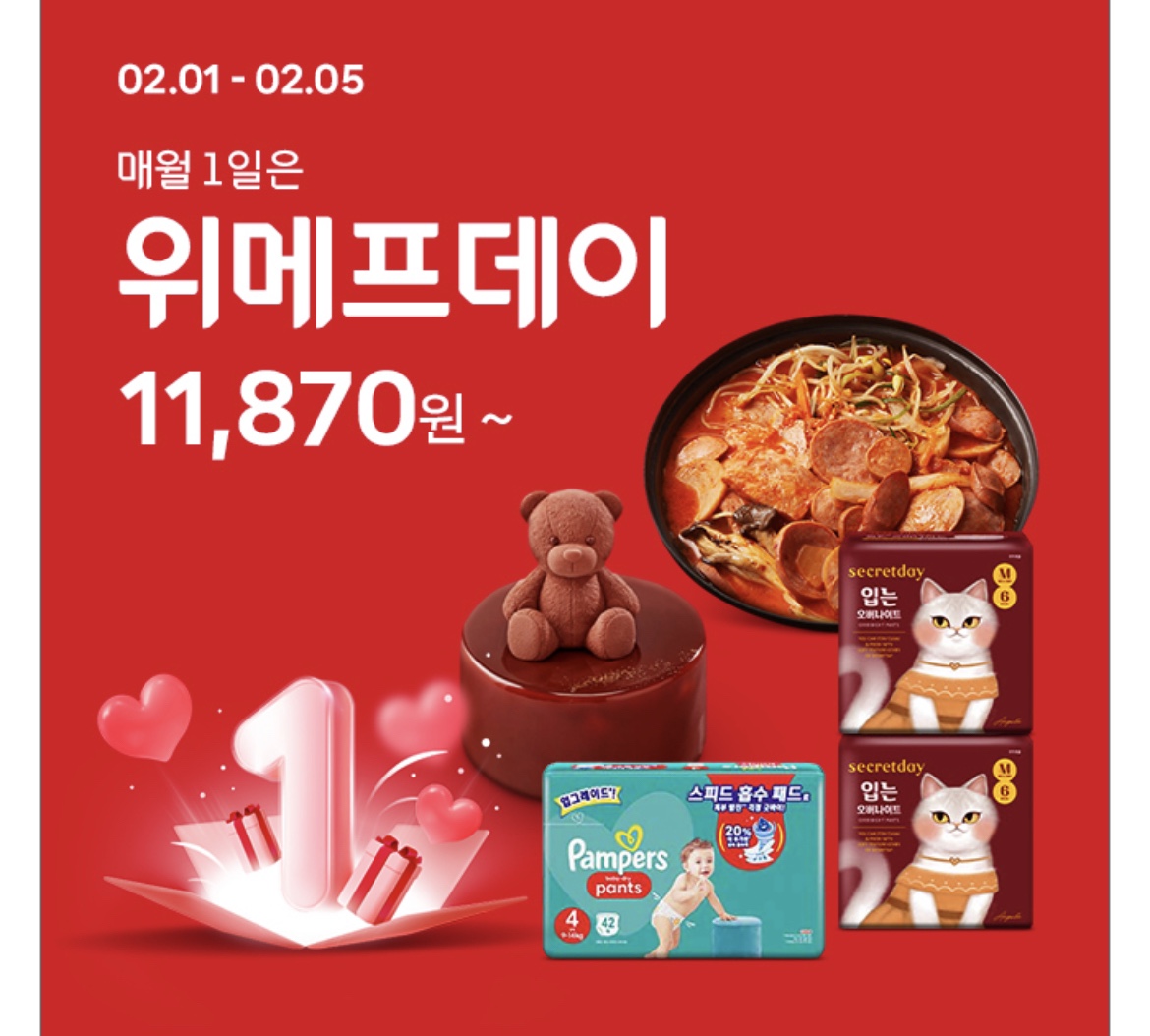 2월 2일 단 하루! 할인에 할인을 더한 <위메프데이 X O.O OO>가 특별진행 될 예정입니다! OOOO에 들어갈 말은 무엇일까요? (힌트 : 숫자+한글)