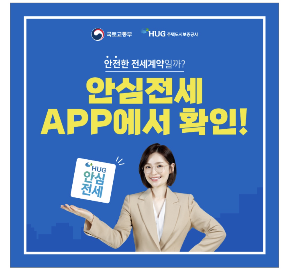 전세계약할 때, 안전한 전세계약인지 주택 시세, 집주인 정보 등을 확인 할 수 있는 HUG OOOO APP을 출시하였습니다. 여기서 OOOO APP에 들어갈 단어는 무엇일까요?