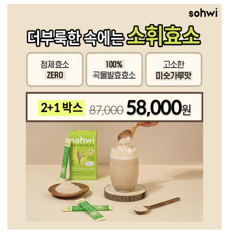 "인공적인 맛이 아니라 건강한 곡물맛이고 다른 제품은 많이 OO한데 이 제품은 첫맛은 약간 달고 뒷맛은 구수하면서 약간 쌉쌀해요. 아무튼 건강해지는 느낌입니다" 다음은 소휘 스테디자임 효소의 고객 리얼 후기 입니다. 여기서 OO은? (힌트 : ㄷㄷ)