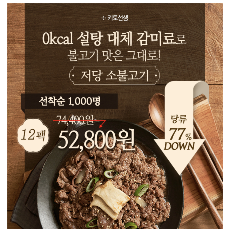키토선생 저당 소불고기는 1인분으로 개별포장되어 있어 언제든 원하는 만큼만 조리를 할 수 있습니다. 초간단 조리로 OO만에 완성되는 프리미엄 소불고기! 예열된 프라이팬에 볶아주기만 하면 완성됩니다.