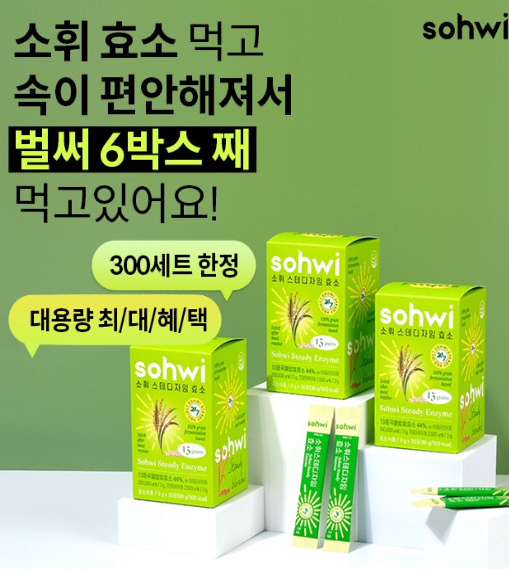 "두번째 구입해봅니다~ 첫번째 구입해 남편에게 몇번 나눠줬더니 식후 속이 아주 편해졌다며 자꾸 달라고 하네요. 섭취해보니 첫날부터 살짝꿍~ 편안함을 느낄 수 있네요. 매일 OOO 섭취하겠습니다^^" 다음은 소휘 스테디자임 효소의 고객 리얼 후기 입니다. 여기서 OOO는? (힌트 : ㅇㅅㅎ)