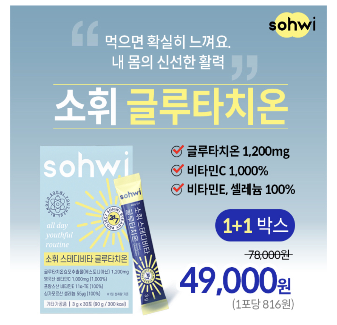 "몇달을 고민하고 가격대비 영양소, 원료 성분까지 꼼꼼하게 살펴보고 결정했어요. 소휘는 3g씩 개별포장이라 휴대도 편하고, 원료 및 원산지 구성성분 다 마음에 듭니다. 또 O OO 먹을 정도로 맛도 있고 좋아요" 다음은 소휘 글루타치온의 고객 리얼 후기 입니다. 여기서 OOO는? (힌트 : ㅁㅇㅇ)