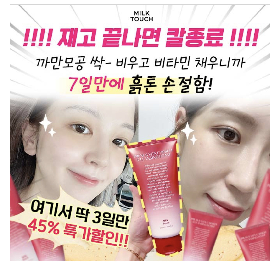 밀크터치 모공토닝폼은 노폐물, 피지 가득 찬 까만모공을 클렌징하고 깨끗해진 모공에 ㅇㅇㅇ을 콕콕 채워줍니다.