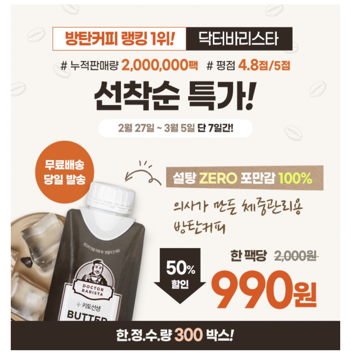 전문바리스타가 선택한 원두로 만든 방탄커피: 닥터바리스타 버터커피
