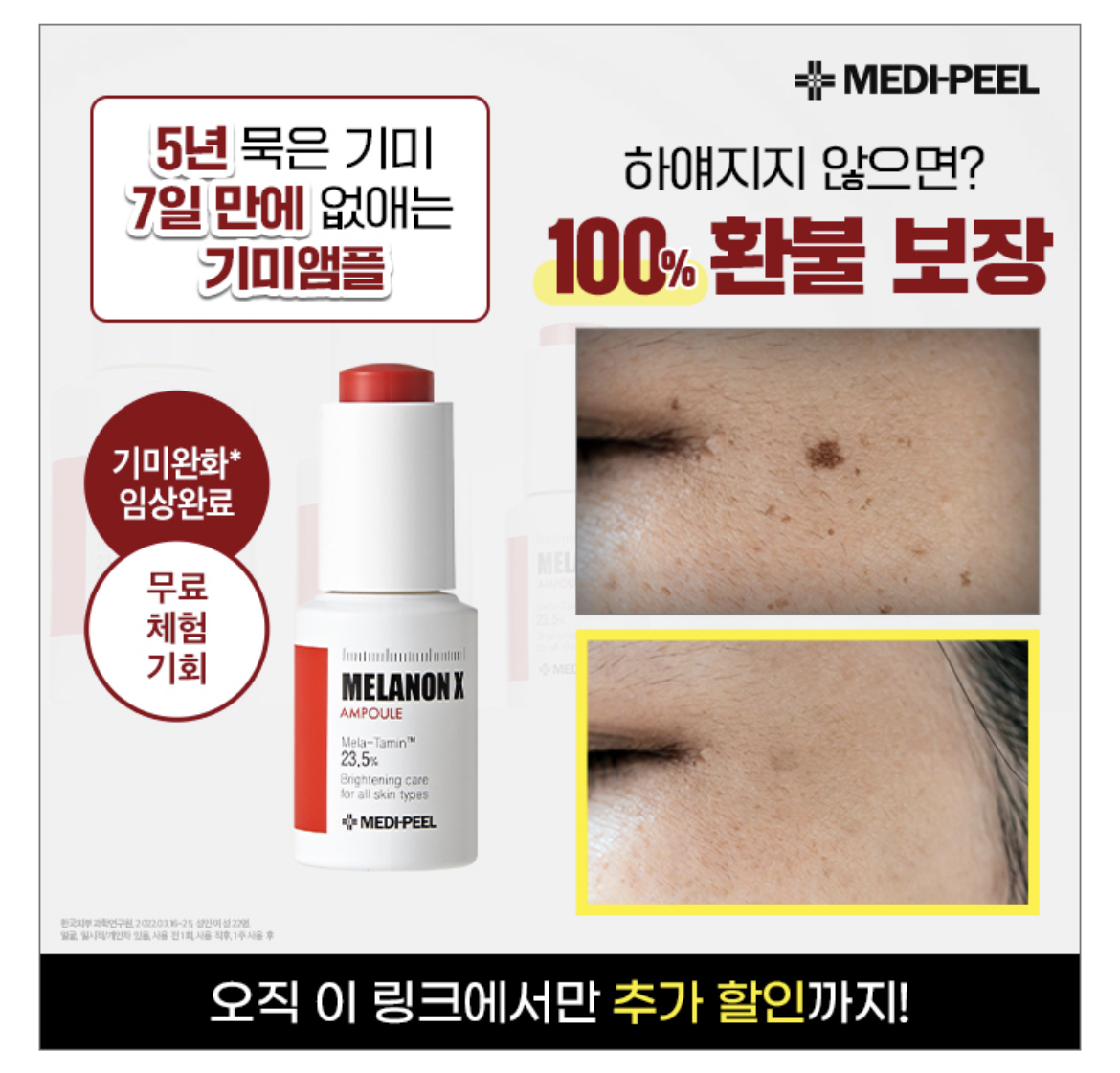 멜라논엑스X앰플은 인체적용시험에서 사용 후 7일 만에