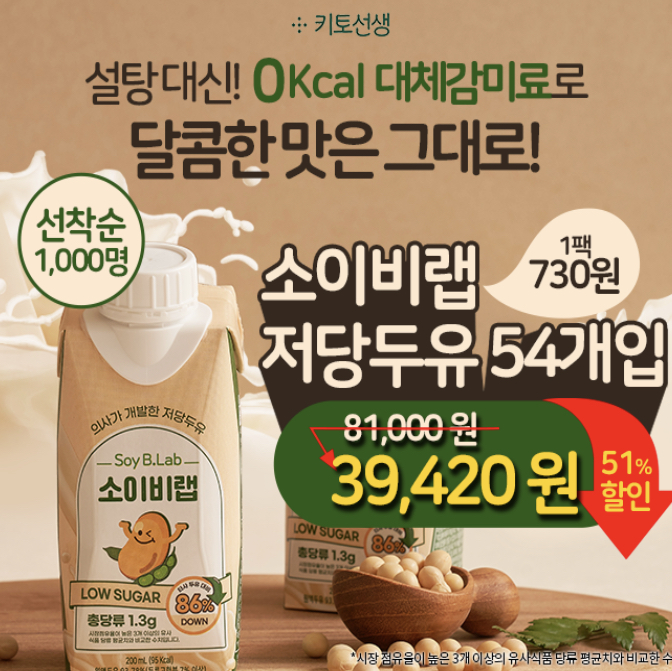 설탕, OOOO을 넣지 않은 건강 음료는 맛이 없어 아이들이 먹지 않습니다. 설탕 없이도 달콤함을 유지한 소이비랩은 아이들도 맛있게 먹으면서도 건강한 음료를 만들기 위해 오랜 연구 끝에 탄생했습니다!