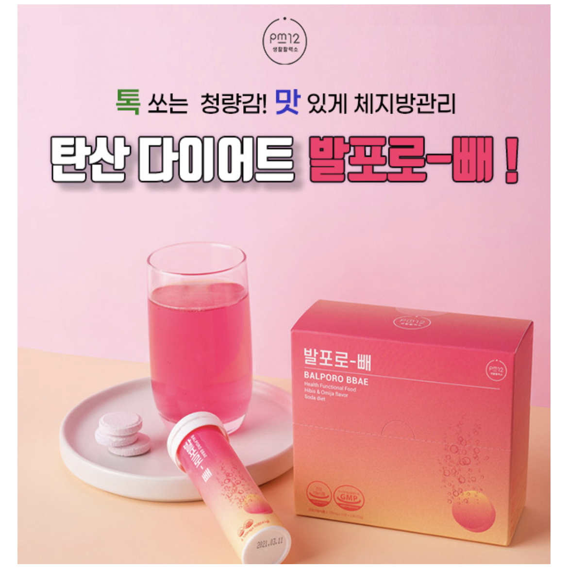 PM12의 "발포로빼"는 탄산이 발생되는 발포다이어트 보조제로 맛있게, 간편하게, 재밌게 다이어트 할 수 있는 건강기능식품입니다.