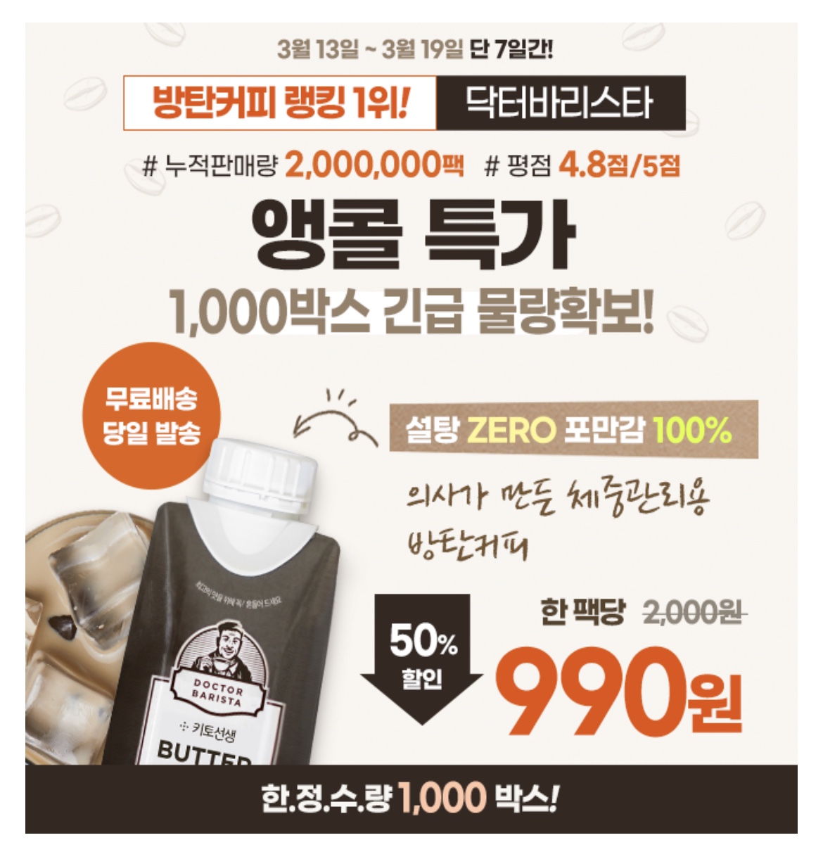 닥터바리스타 방탄커피는 원두의 풍미가 담기고 한국 사람들의 입맛에 맞추면서도 좋은 영양과 방탄커피의 효과는 그대로 담았습니다. 닥터바리스타로 건강한 OOO 잡아보세요!