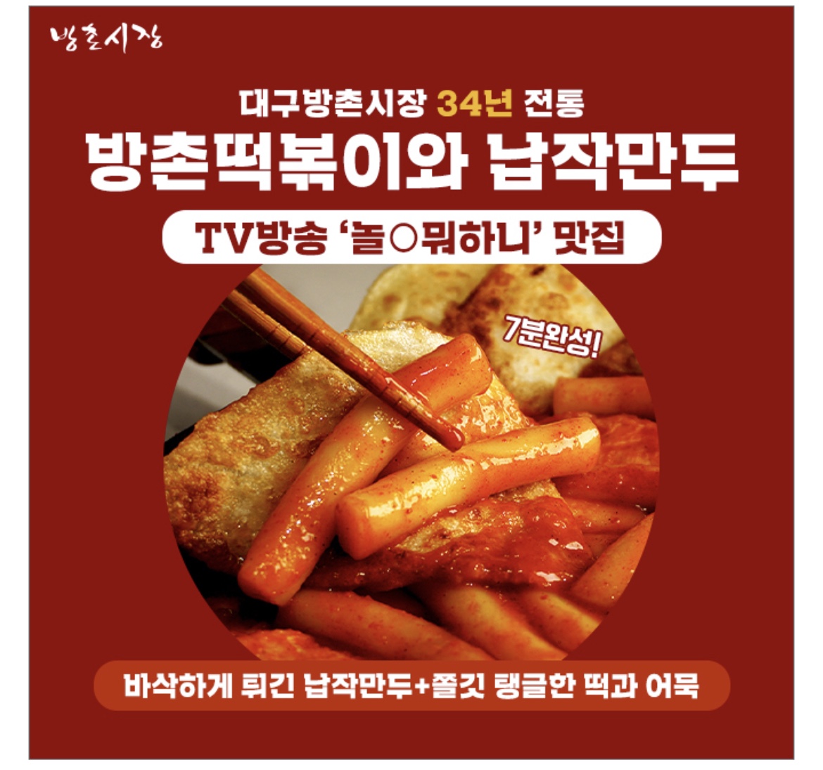 대구 방촌시장의 명물 '방촌떡볶이와 납작만두'는 제조 당일로부터 O일내 배송되어 가게에서 사먹는 것과 같은 맛을 유지합니다. O에 들어갈 숫자는 무엇일까요?