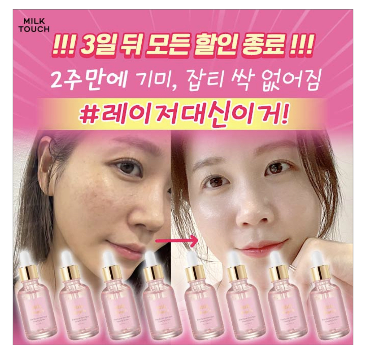 밀크터치 잡티 작별 세럼은 피부 속 OOO 면적 개선 임상을 확인한 제품인데요.
