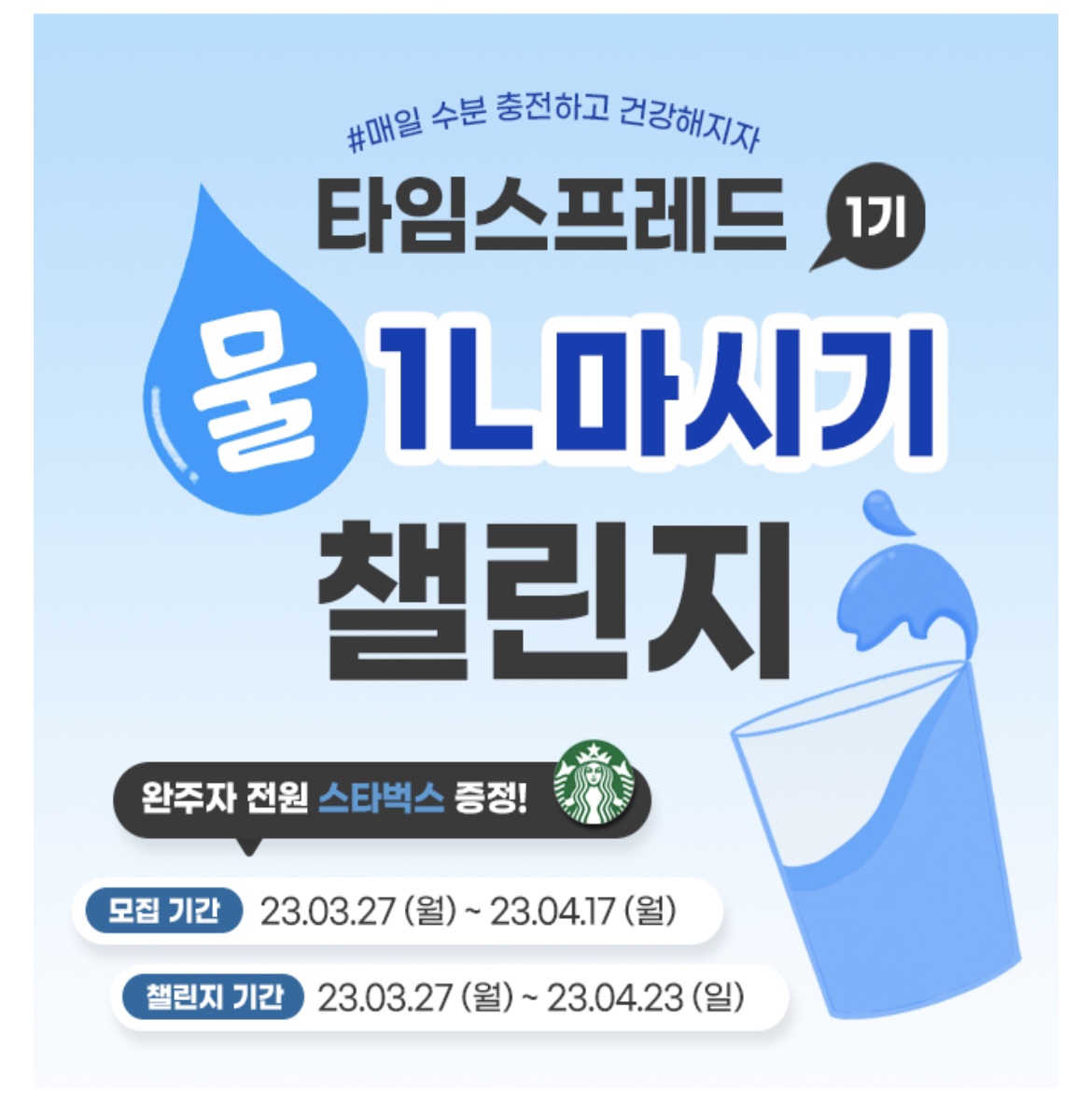3/27~3/29까지 타임스프레드 물 1L 마시기 챌린지 용돈퀴즈를 완료하고 챌린지에 참여한 유저 전원에게는 총 OOOO 캐시를 드립니다. OOOO에 들어갈 네자리 숫자는 무엇일까요?