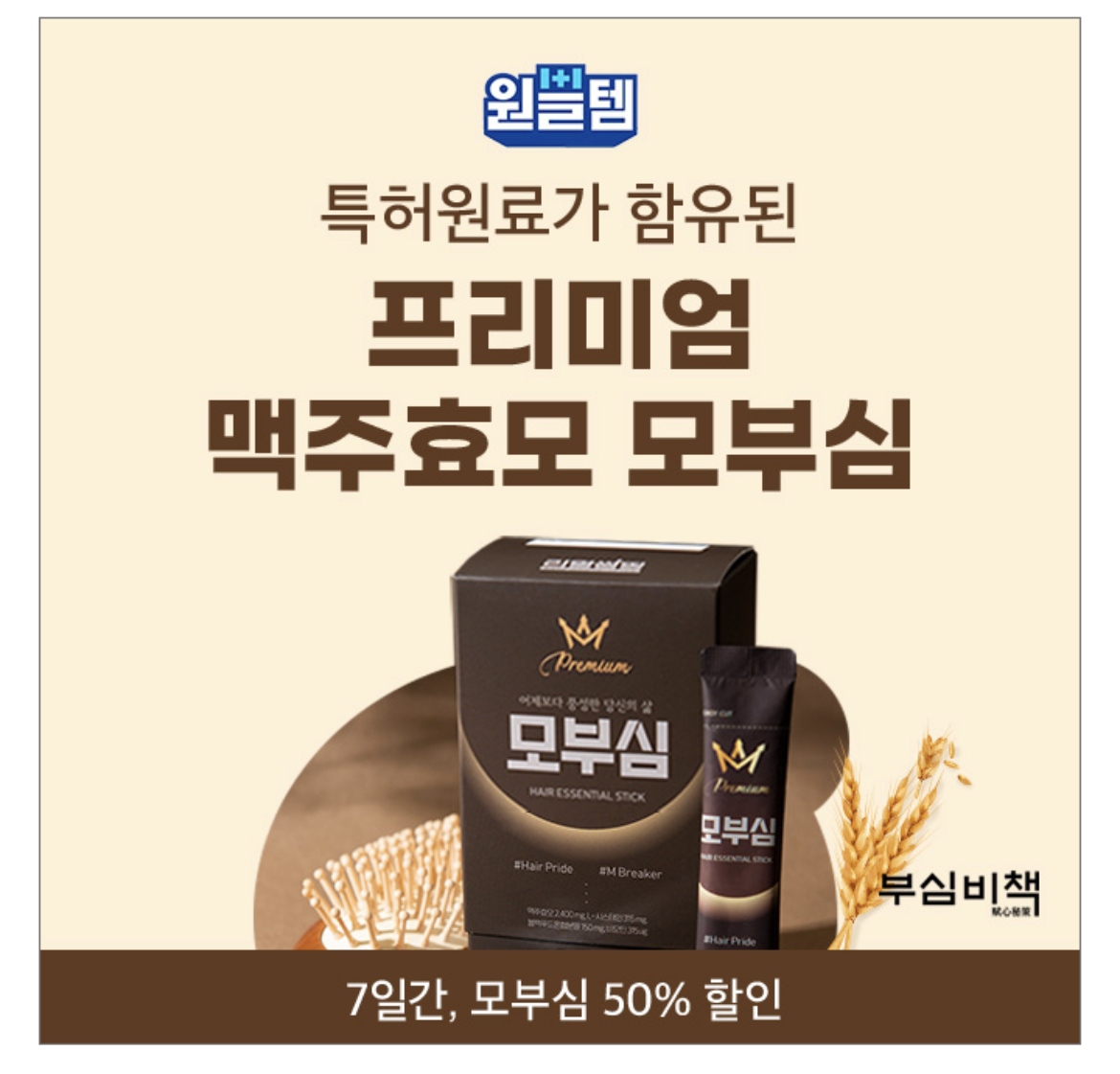 부심비책의 모부심의 주요성분인 맥주효모는 유럽 OOOO 노동자들의 풍부한 머리숱에서 힌트를 얻어 발견하게된 식물성 단백질이 풍부한 원료입니다.
