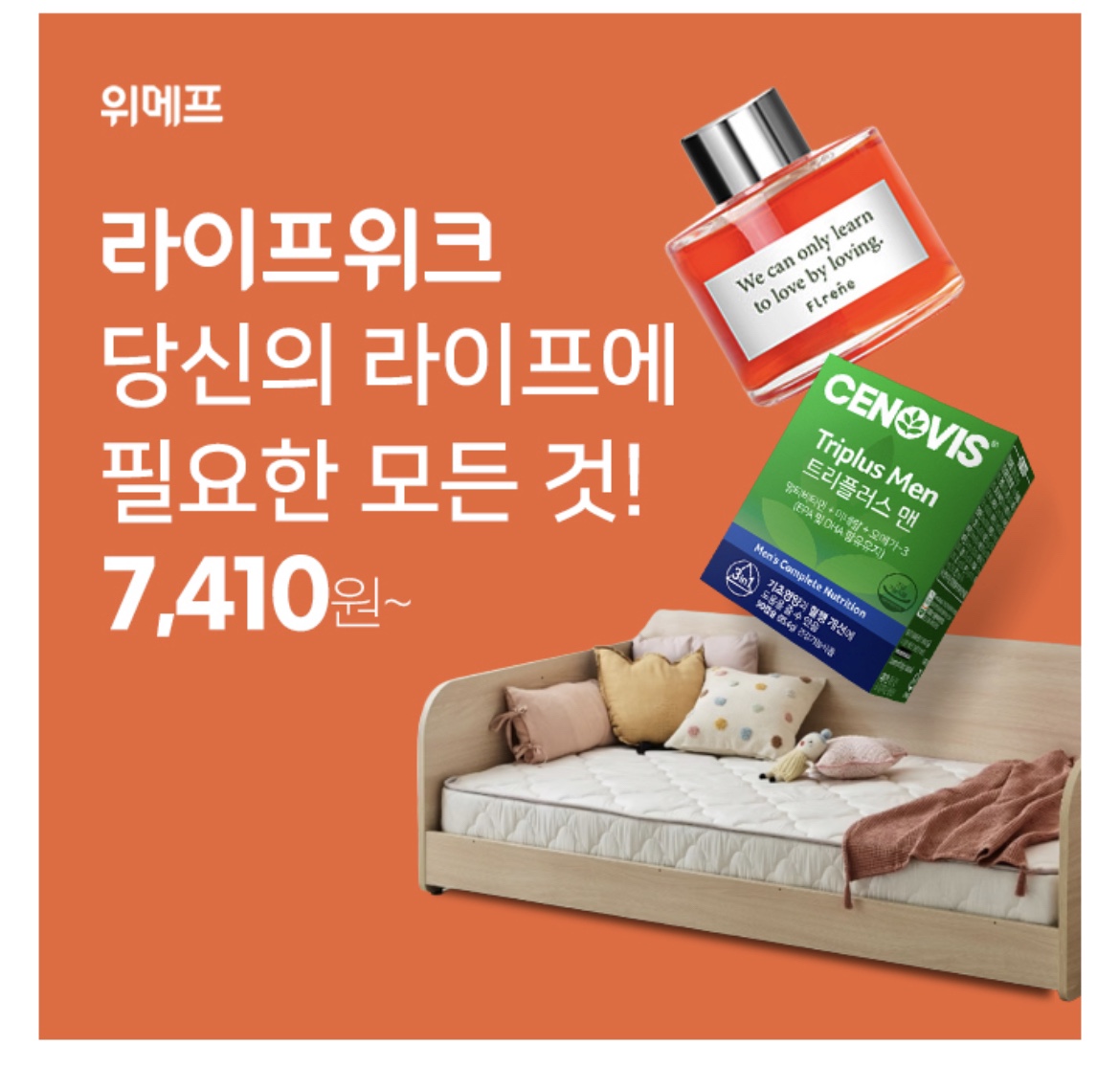 위메프에서는 라이프위크가 진행됩니다! 뷰티/홈데코/건강식품 맞춤 추천+쿠폰까지! 당신의 브라보 라이프를 위해 제안드리는 기획전 모아보기! 2023신학기 최대26% 쿠폰할인 OO 기획전에서 확인해보세요! 과연 OO에 들어갈 말은 무엇일까요?