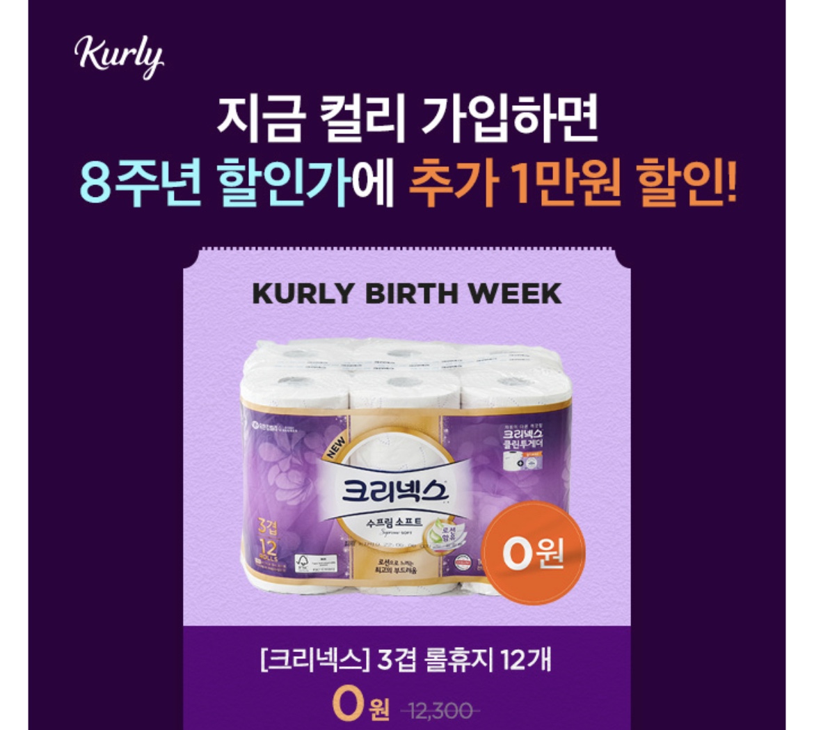컬리가 처음이라면? 원하는 상품이 무엇이든 OOOO 쿠폰 혜택! 가입 즉시 사용 가능한 1만원 할인 쿠폰을 즉시 드려요! 컬리 8주년 기념 이벤트가 내일이면 끝나니 이 기회 놓치지 마세요!