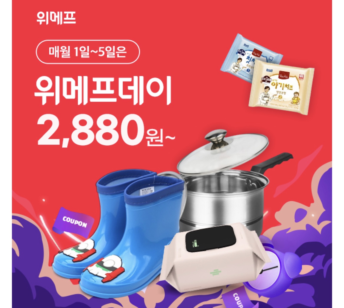 매월 1일~5일은 위메프데이에서 득템하는날! ㅇㅇ/언더웨어 카테고리 BEST에서는 신발,가방 등 모두 모아 특가로 드리고 있으니 지금 확인해보세요! 과연 ㅇㅇ에 들어갈 말은 무엇일까요?