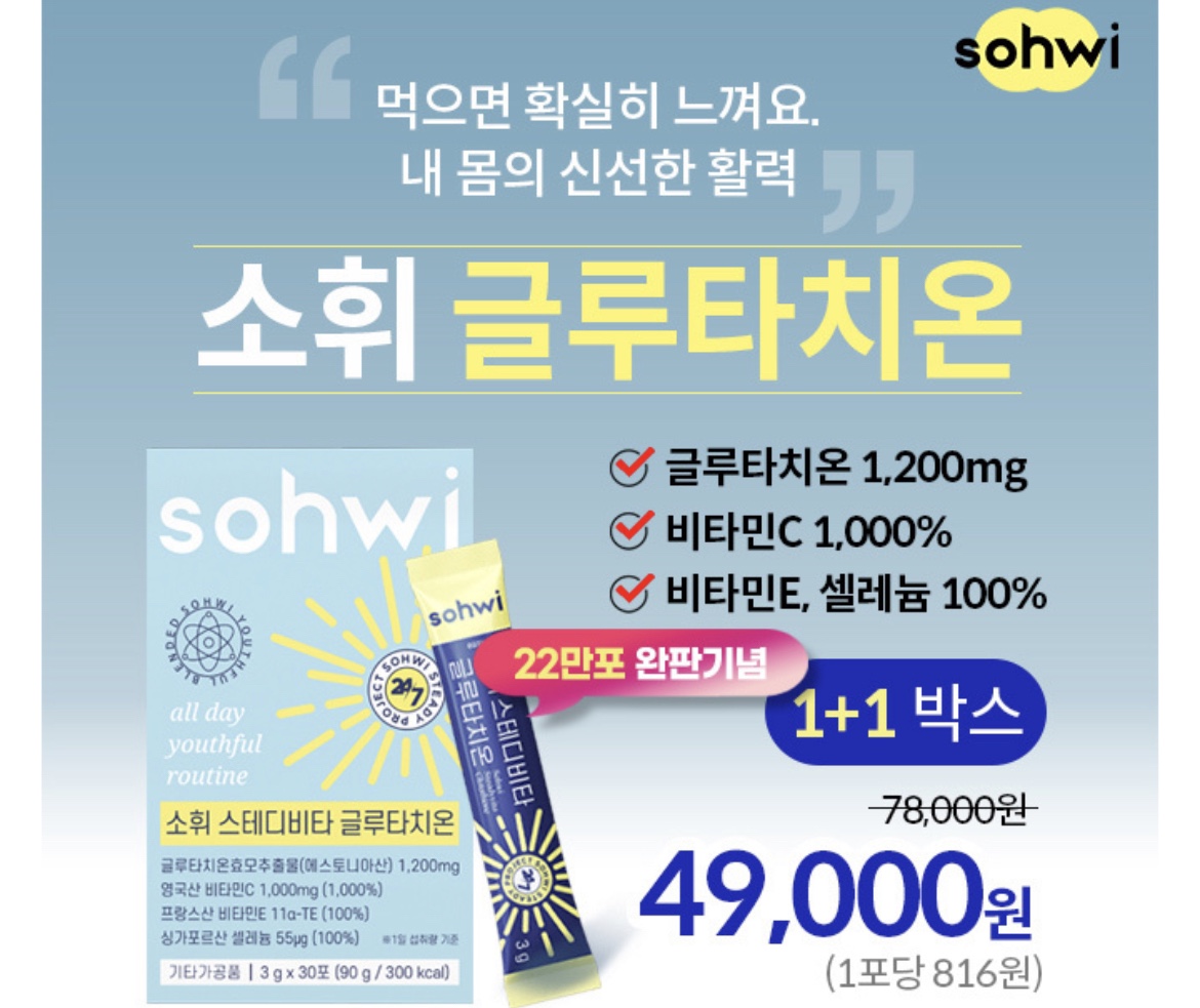 22만포 판매 돌파! 일명 '재구매' 글루타치온! 소휘 글루타치온 1+1 기회를 놓치지 마세요