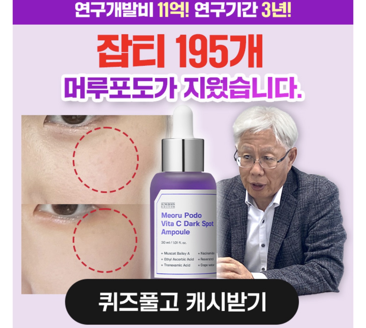 성분에디터 잡티 앰플의 미백효과 극대화 비결은 3년의 시간과 11억의 연구비용을 들여 만든 미백 특허 성분 머루비타C 인데요,