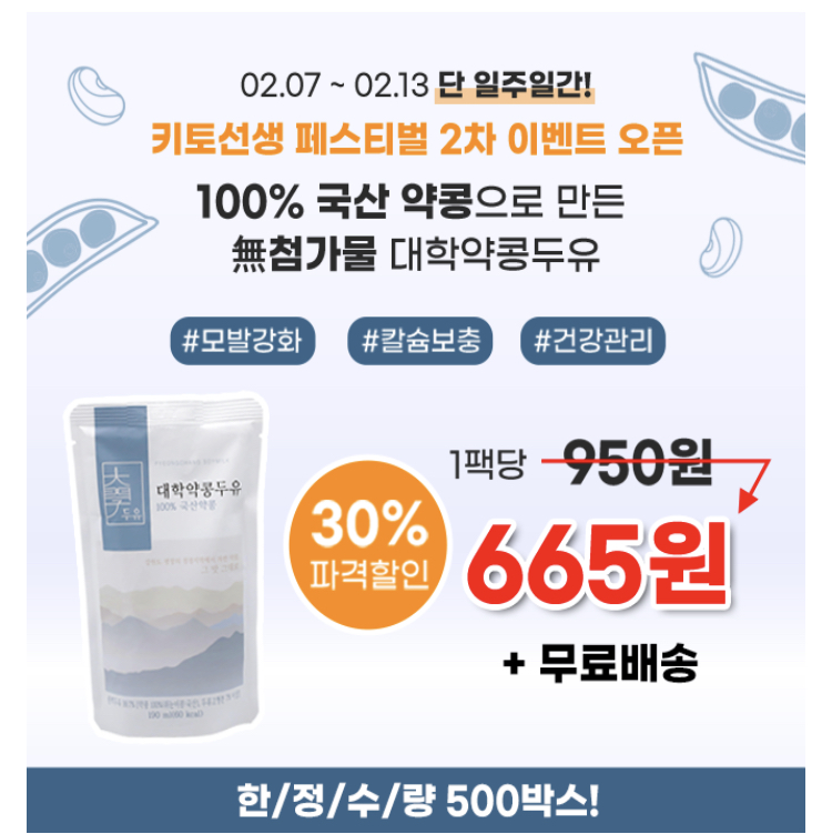 대학약콩두유는 국산 약콩 100%를 사용하며 약콩의 영양이 통째로 들어있습니다. OOO 없이 건강하게 만들어 본연의 맛 그대로 섭취할 수 있는데요.
