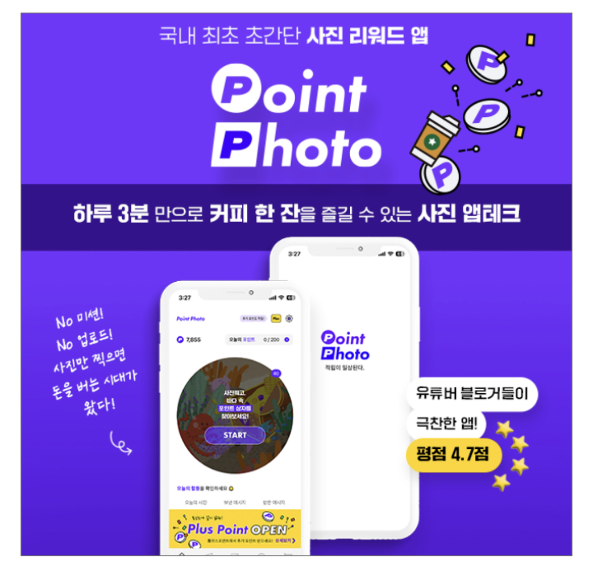 돈버는 사진 리워드 앱 '포인트포토'로 하루 단 3분 만 사용하고 한 달이면 커피 한 잔 GET! (아이폰, 안드로이드 모두 OK)