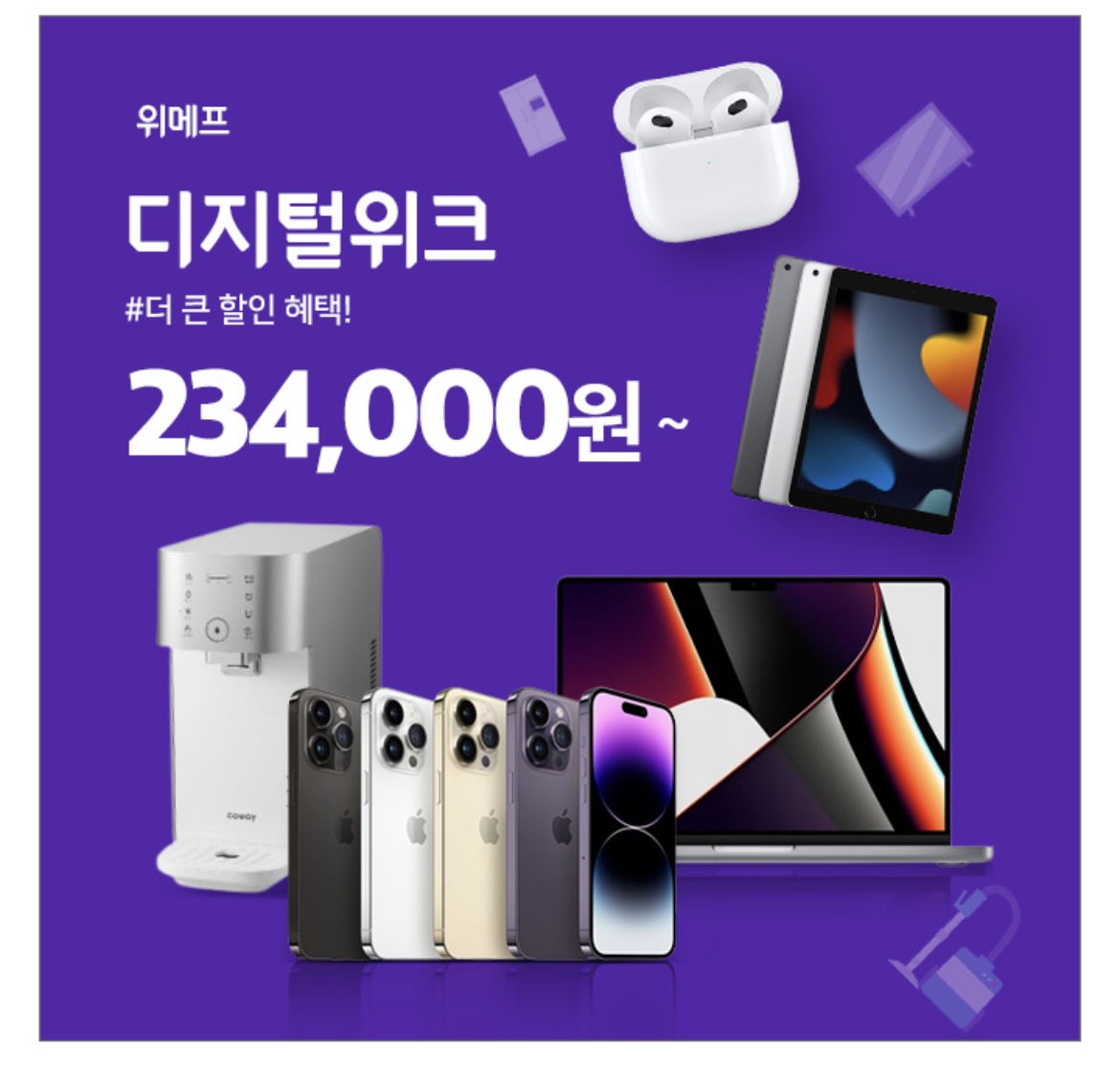 2월1일 ~ 12일 위메프에서는 더 큰 할인혜택! 디지털위크가 진행됩니다! 매일 00시 초특가 상품 공개! 오늘의 'OOO' Pick! 지금 확인해보세요~! 과연 'OOO'에 들어갈 말은 무엇일가요?